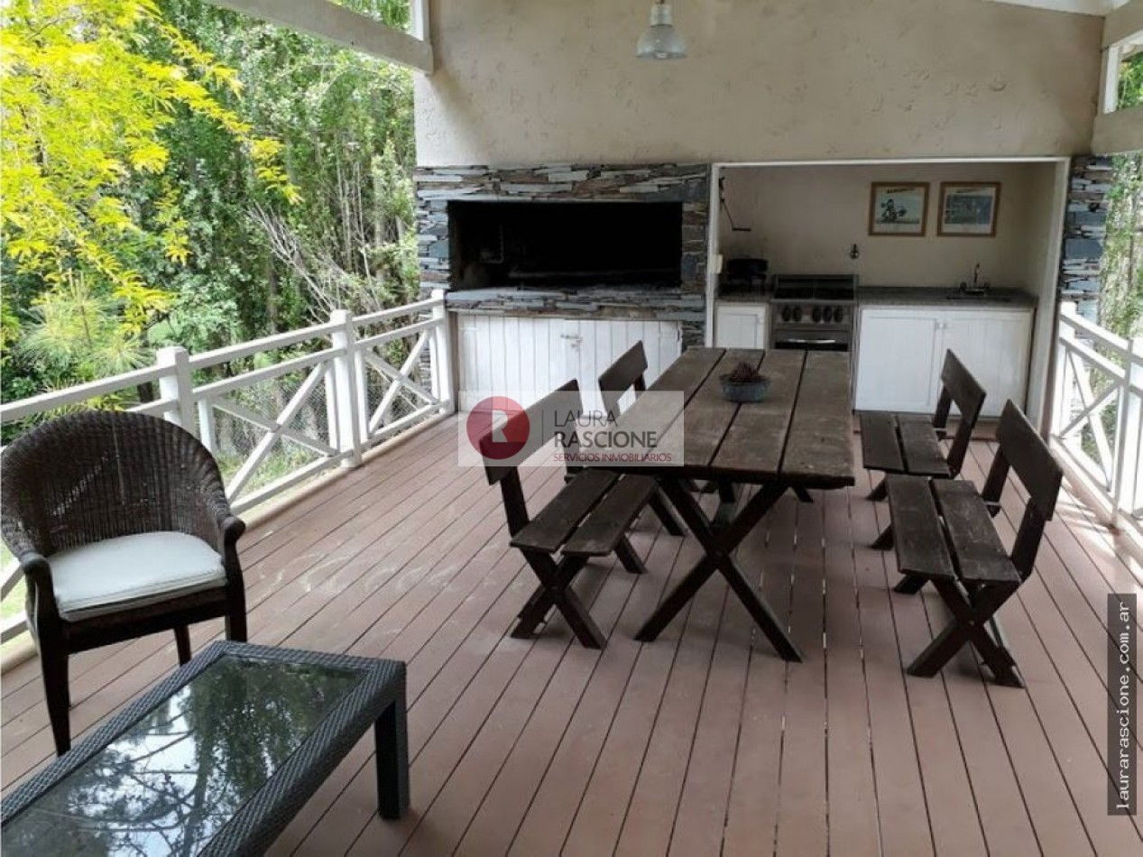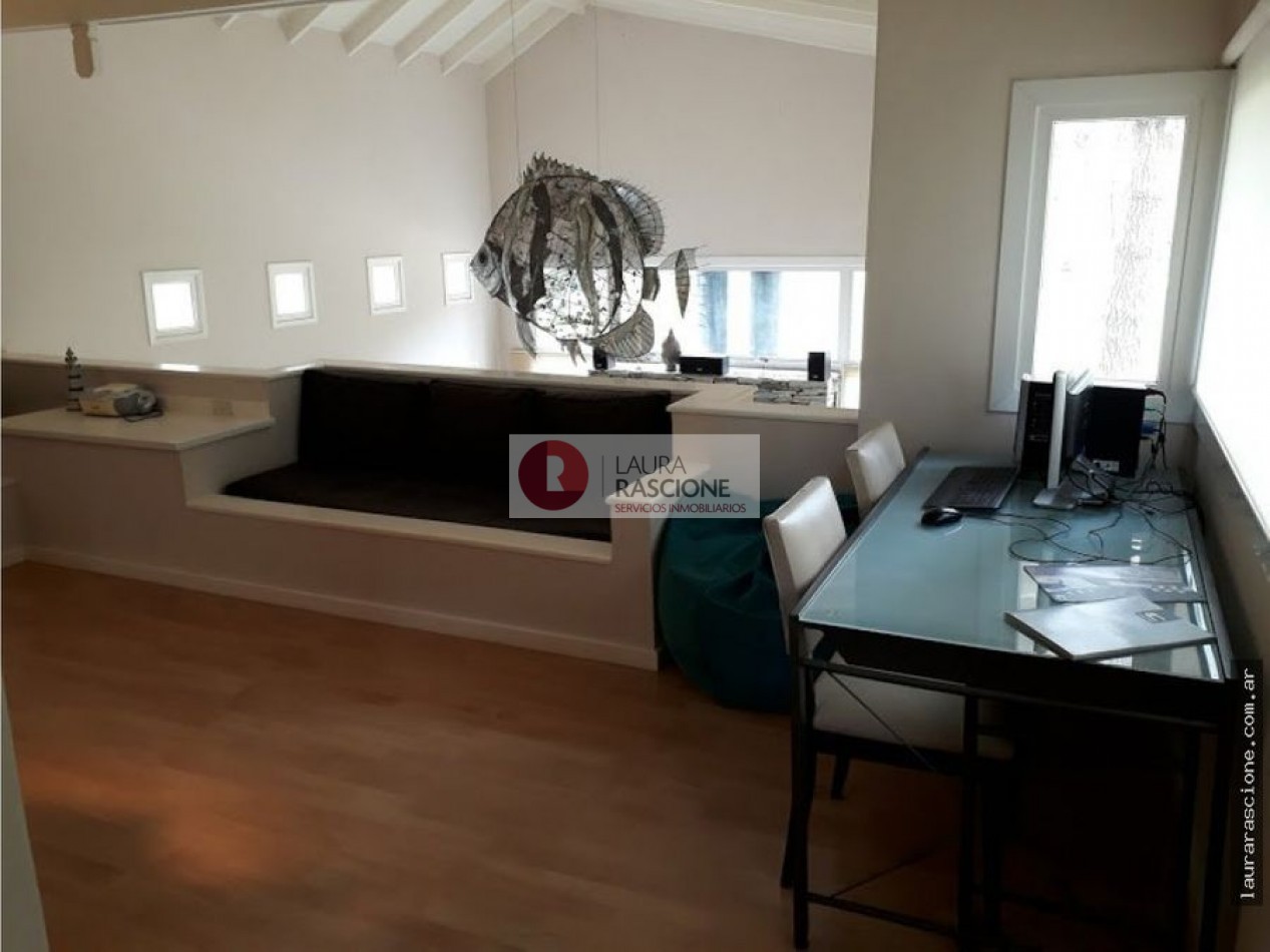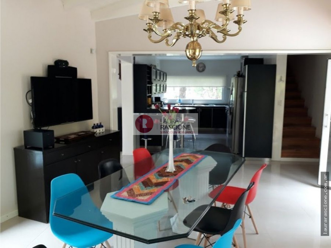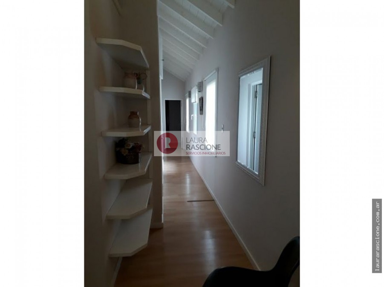 Luminosa propiedad en esquina. A nivel de calle, espacio semicubierto para 2 vehículos y espacio cubierto para guarda cuatriciclos con baño completo.Pileta climatizada. En planta, living, cocina integrada con comedor con salida a semicubierto/quincho con parrilla. lavadero, toilette y habitacion principal en suite con gran hidromasaje y vestidor. En planta alta: escritorio que balconea al living con espacio para ver TV. 3 dormitorios, (uno de ellos con cama matrimonial) y 1 baño completo con hidromasaje.