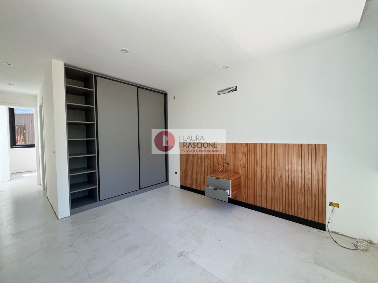 En el nivel superior la casa alberga los espacios de uso más privados, cuenta así con cuatro dormitorios amplios en suite, todos ellos con situaciones de balconeo exterior y parasoles móviles, y un área de estudio.