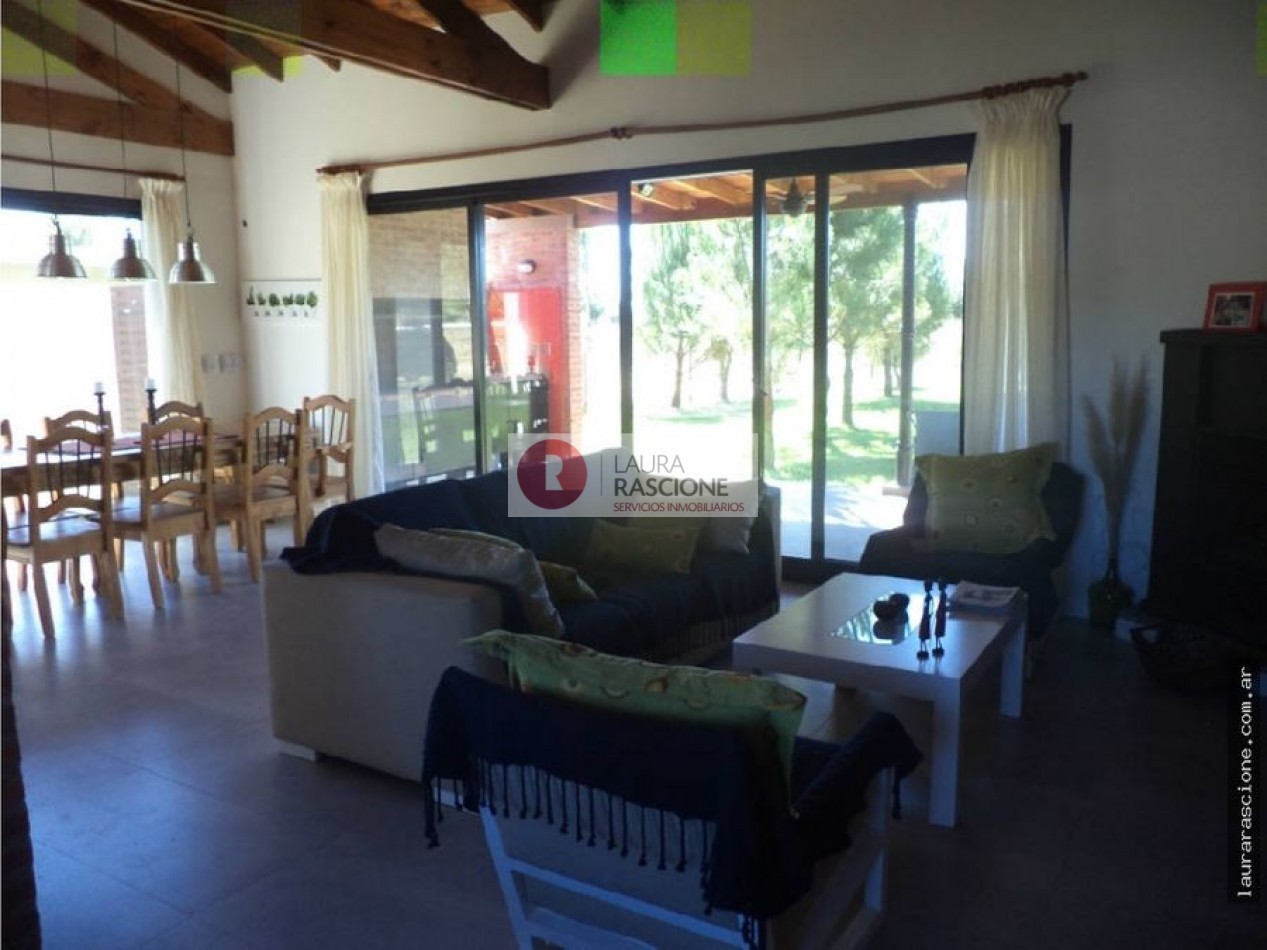 Casa en La Herradura Hermosa Casa Estilo Campo construida en una sola planta Cuenta con un gran Living con hogar a leña ,grandes ventanales que se comunican con la galeria - Comedor cocina integrada con barra desayunadora Toilette de recepcion 1 Cuarto Matrimonial en suite con puerta corrediza que se comunica a la galeria 3 Cuartos secundarios Altillo 1 Baño completo Calefaccion por losa radiante Exterior Gran galeria con parrilla Riego por aspercion Parque totalmente cercado