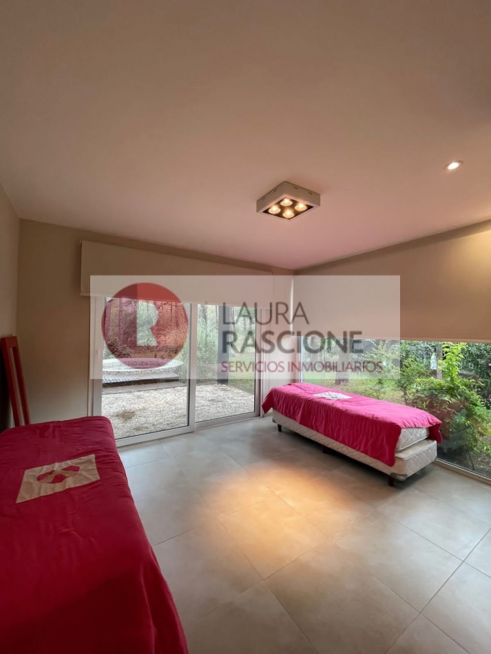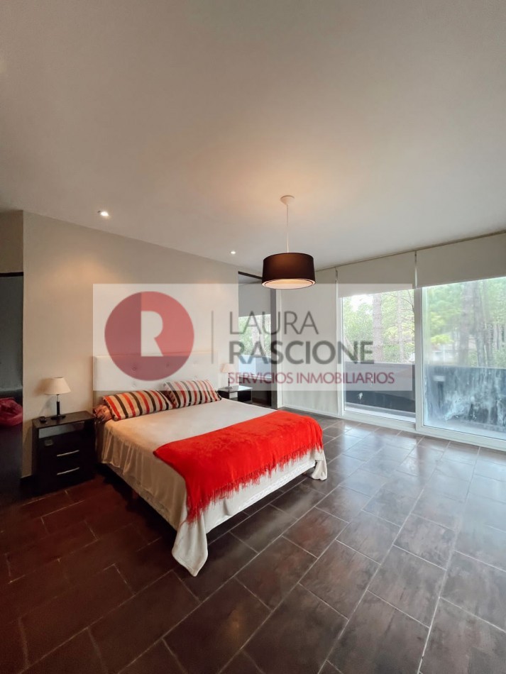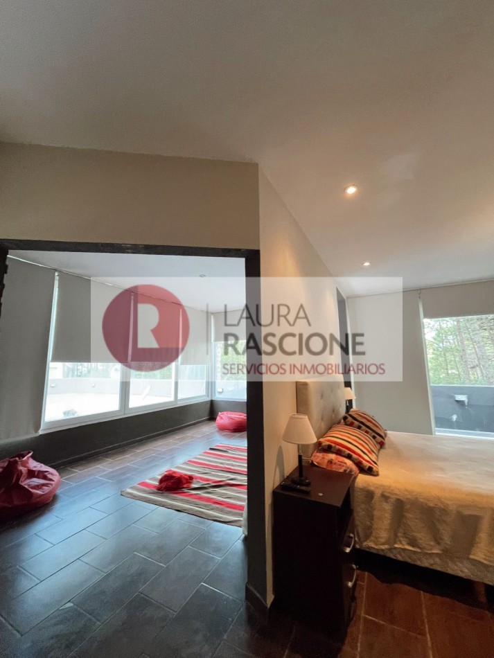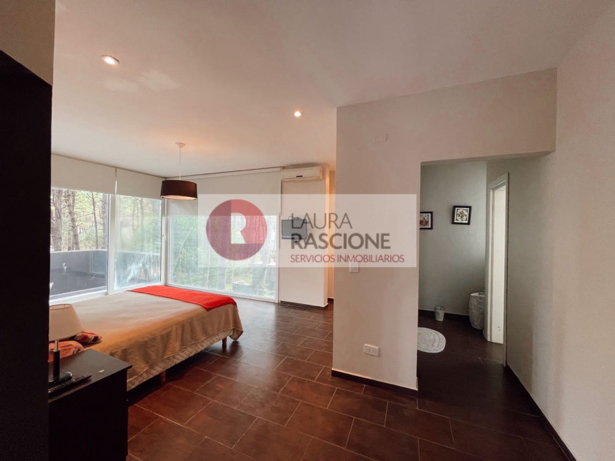 Planta Alta Dormitorio matrimonial en suite, vestidor. Amplios ventanales hacia al bosque. Solarium descubierto.