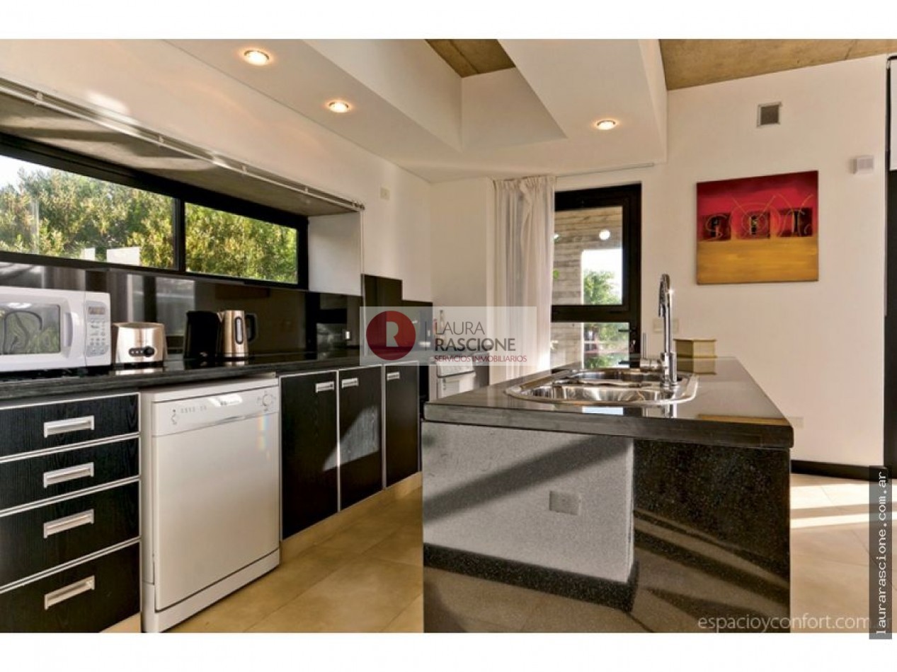 Casa de estilo minimalista, se encuentra ubicada en Cariló, sobre la calle Avutarda, casi esquina Mimbre; a 1 cuadra de la playa y aproximadamente 7 del centro. En planta subsuelo: sala de máquinas, amplio lavadero, habitación de servicio con baño y depósito apto para guardar cuatriciclo. Cochera semicubierta para 2 autos. En la planta baja, se encuentra el toilete de recepción, living con hogar a leña, comedor y cocina, (todos estos ambientes integrados). Gran galería donde se encuentra la parrilla. En la planta alta: 3 dormitorios en suite, todos equipados con split e hidromasajes. La casa cuenta con losa radiante. Pileta descubierta: 3.50 x 750 Antigüedad de la propiedad; casa construida en el 2011 y la pileta en el 2015