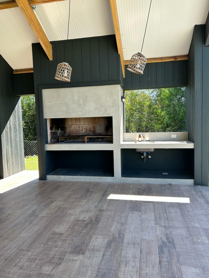 Gran galería cubierta con parrilla y bacha con agua caliente