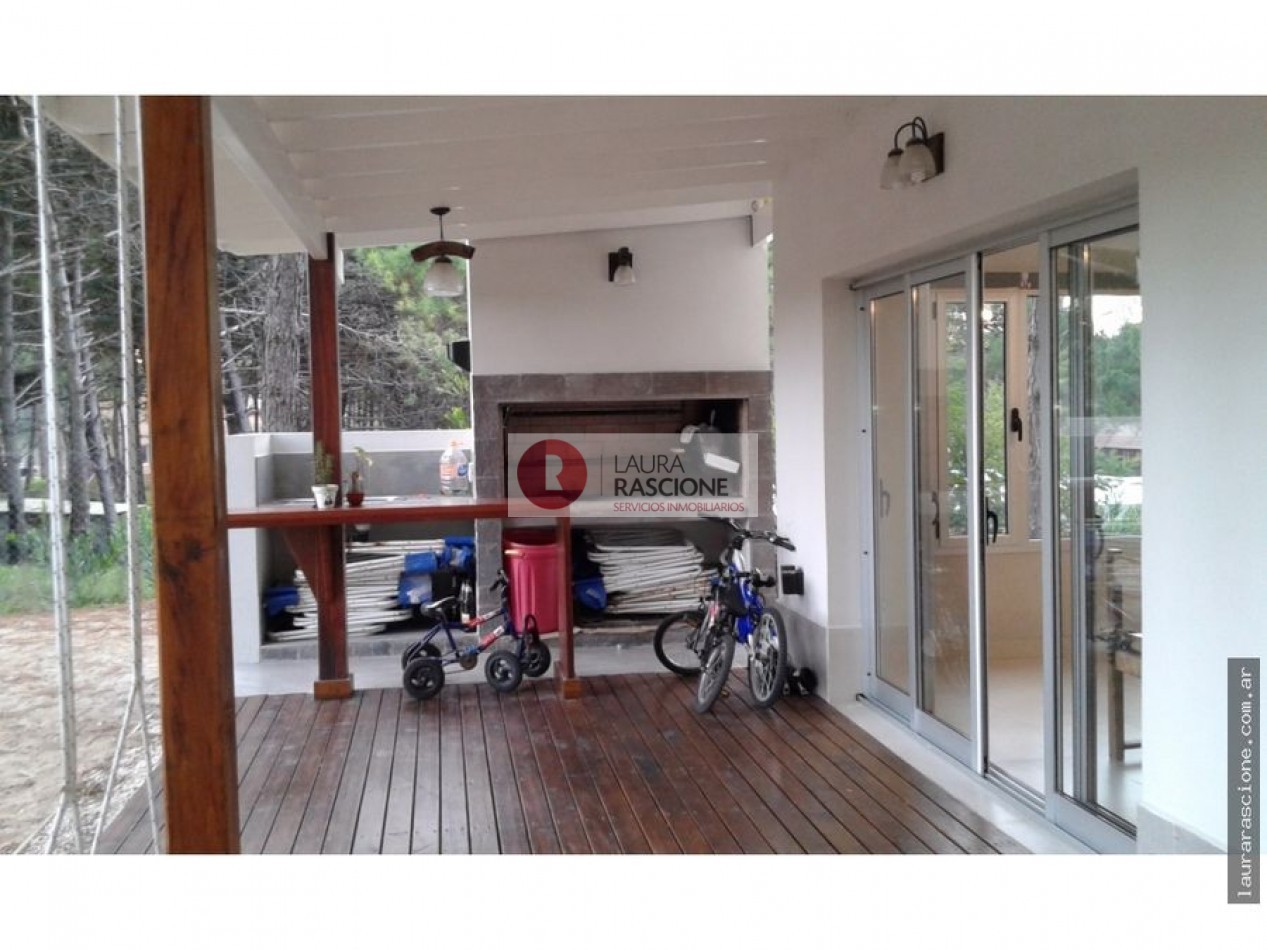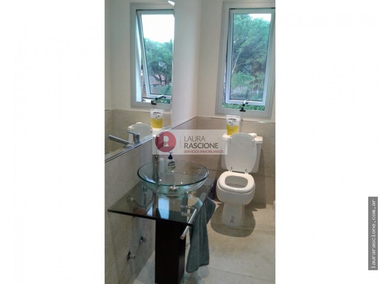 Excelente Propiedad en nivel alto, ubicada en PINAMAR, Garage Cerrado con parrilla, dormitorio de servicio con baño completo. Planta de Acceso : Luminoso living , cocina comedor integrado con salida a semicubierto con amplia parrilla. Toillete. Lavadero. Posee dormitorio matrimonial en suite y vestidor . Un Dormitorio amplio secundario, baño con bañera. Cuenta con grupo electrógeno propio. Materiales de primera calidad en toda la propiedad.