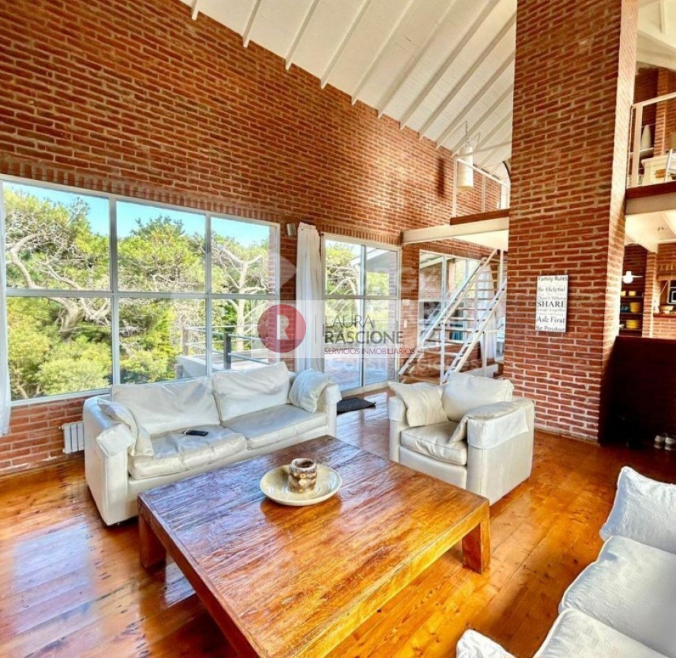 Al ingresar nos encontramos con un amplio living con ventanales con vistas divinas al frente de la propiedad y al parque trasero de 1100m2, también se destacan sus techos de doble altura, su hermoso hogar a leña, sus amplios sillones con mesa ratona de gran tamaño y calidad deco.