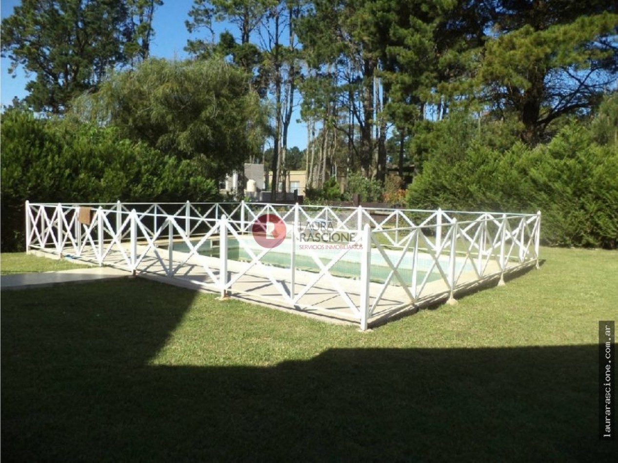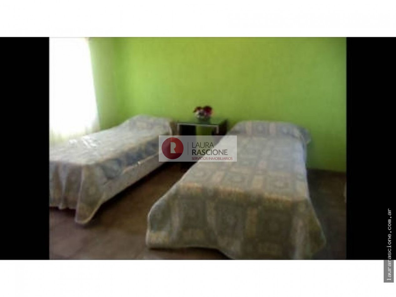 Dormitorio secundario con 2 camas en suite planta alta: 2 Dormitorios secundarios con 2 camas, 1 baño completo con bañera, 1 dormitorio en suite con vestidor, led de 40'' y aire acondicionado. El El exterior posee parrilla, juego de mesa y sillas (techado). Cochera semi cubierta, wifi, teléfono. Piscina climatizada.