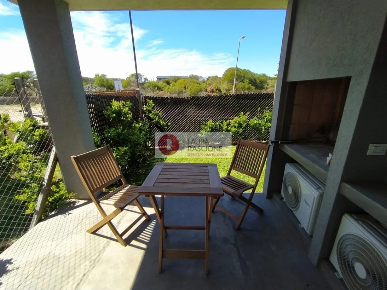 Departamento frente al mar, cuenta con 3 ambientes, cocina, comedor y living integrados, ubicado en planta baja en el edificio Sea Side. Cuenta con dormitorio matrimonial en suite. Dormitorio secundario y otro baño completo (con ducha). Patio con parrilla, cochera cubierta. Piscina y salon de usos multiples