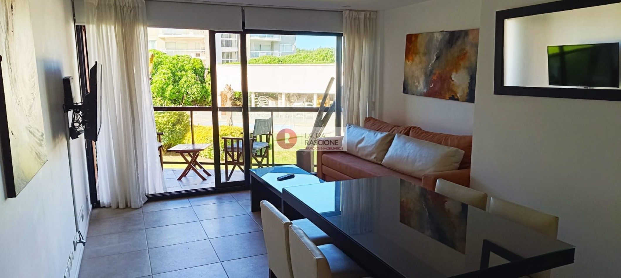 Living-comedor, balcón terraza con vista a la plaza, Cocina integrada, la unidad cuenta con dormitorio principal con baño en suite y un segundo dormitorio mas un 2° baño completo. Parrilla propia en el balcón, Calefacción por losa radiante, caldera individual dual y gas natural. ACC frío/calor