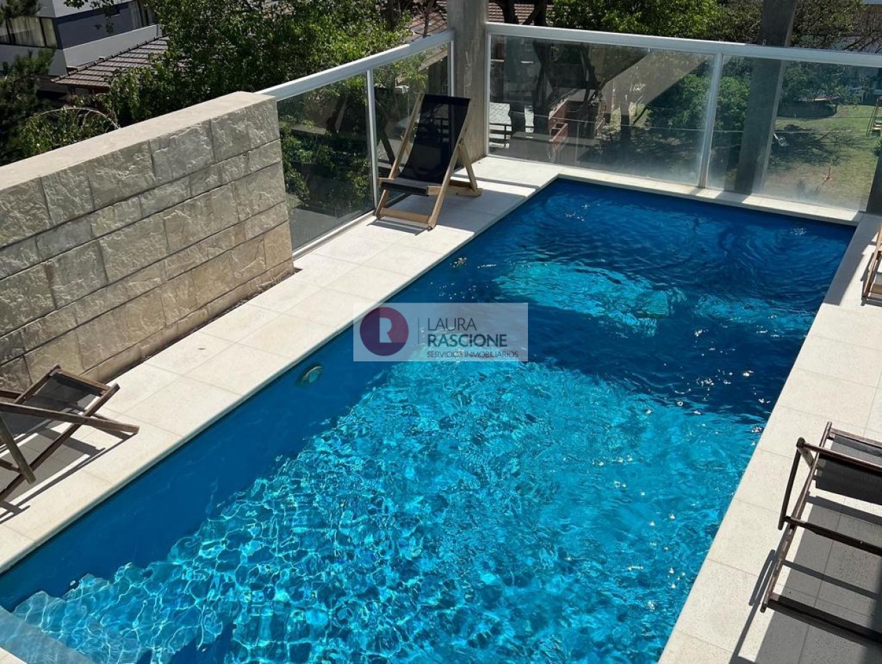 • Pileta climatizada con filtro automático y deck de madera, con solarium.
