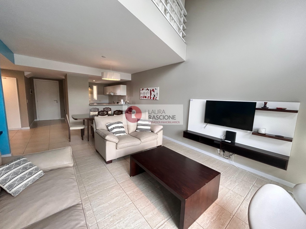 Planta Baja cuenta con cocina comedor con pasa platos. Amplio living con doble altura, amplios ventanales con salida al balcon con parrilla. Toillete. Dormitorio matrimonial en suite con vestidor.