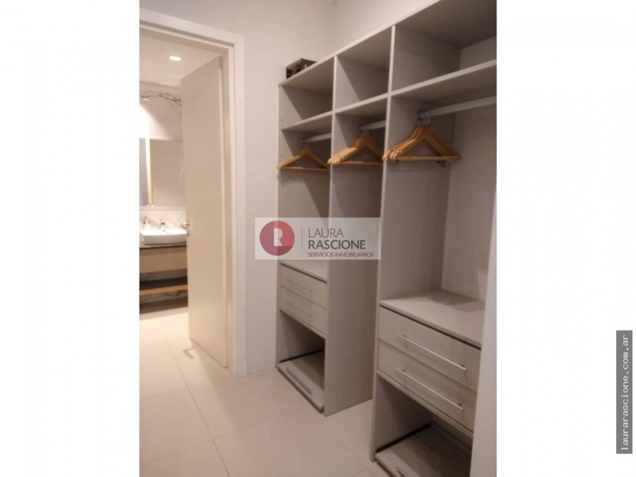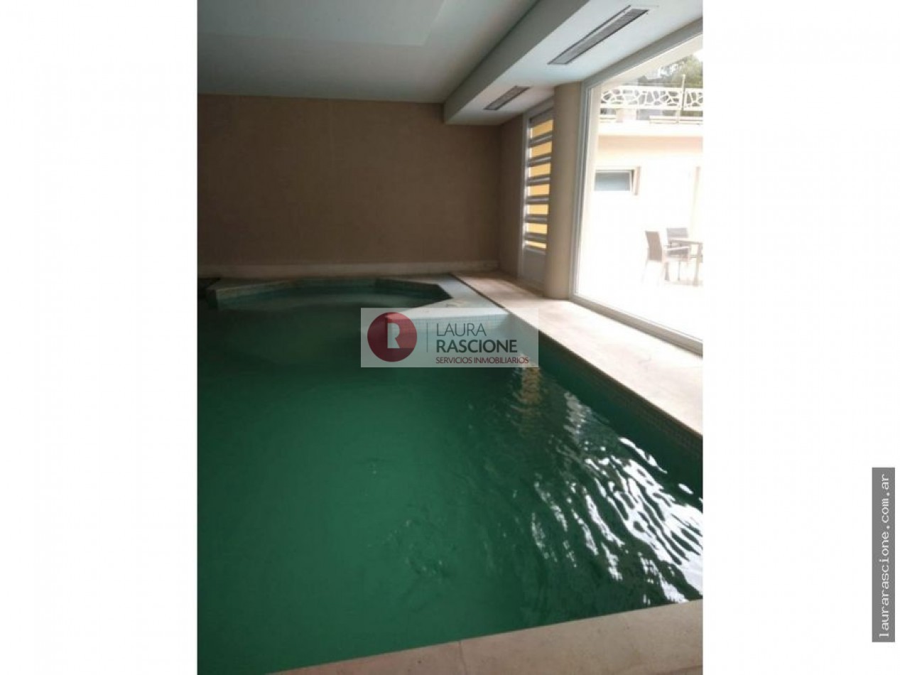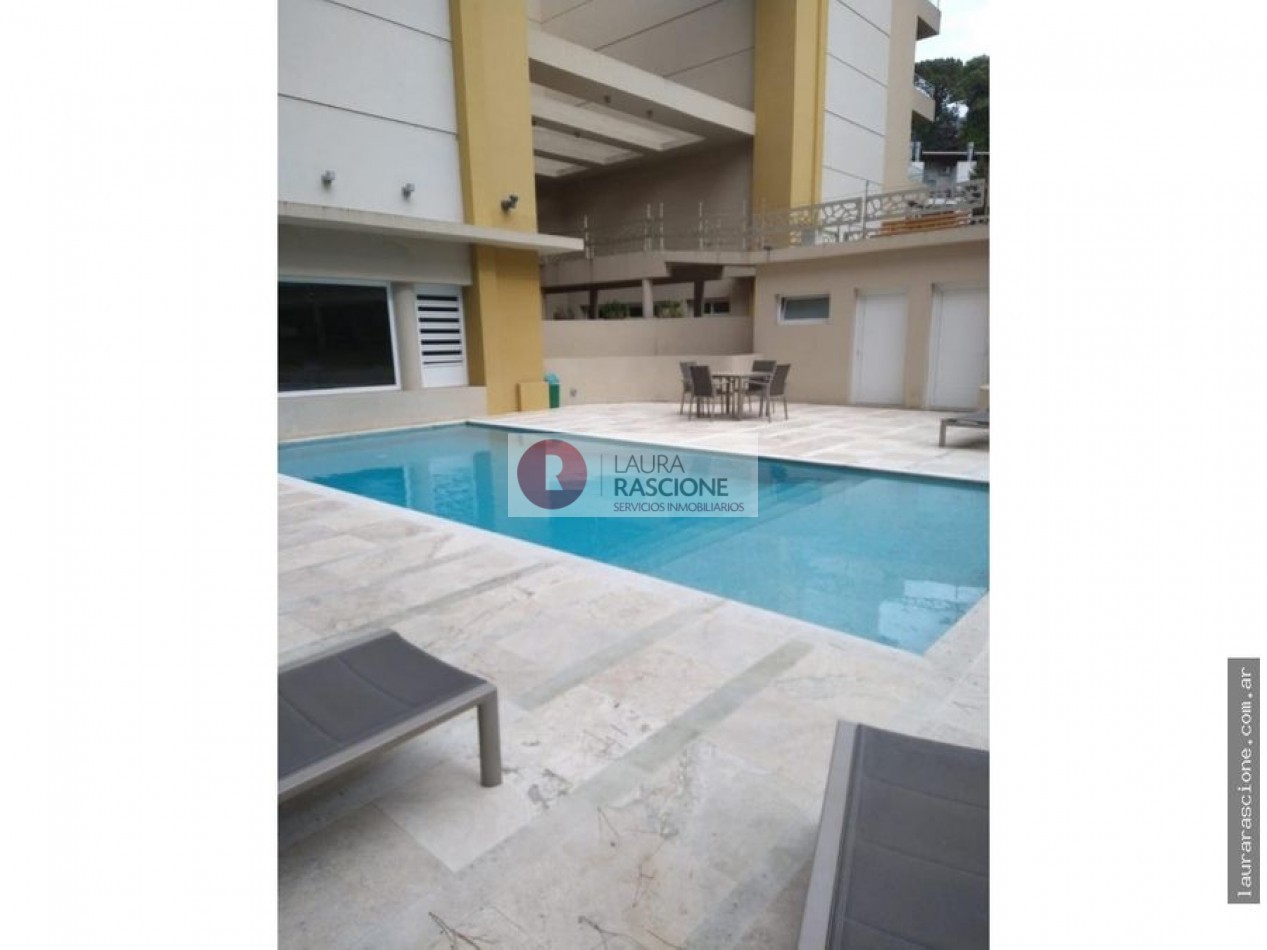 Espectacular Departamento de categoría en venta. El mismo cuenta con un amplio y luminoso living comedor con salida al balcón corrido con parrilla. Cocina integrada al comedor. Habitación principal en suite con vestidor. Las dos habitaciones con salida al balcón. Segundo baño completo. Cochera Cubierta. Baulera. Jardín privado - Superficie: 100 m2 Cubiertos 20 m2 Balcón 150 m2 Jardín privado Amenities: Piscina climatizada cubierta. Piscina exterior. Gimnasio, sauna, sala de masajes, mini sala de cine, terraza con parrillas equipada con mesas grandes, hidromasaje para varias personas, solárium con Jacuzzi, baños comunes, jardín de invierno. (Equipado con accesorios de primer nivel). Vigilancia 24 hs. Detalles constructivos: Carpintería exterior de PVC con cámara de aire. Carpintería interior de madera a medida. Calefacción por radiadores. Aires acondicionados frio-calor. Interior de placares totalmente terminados. Mobiliario de cocina a medida. Mesadas de cocina silestone, mesada de baño de mármol. Información adicional: Gas natural, agua caliente con caldera individual. *Toda la información y medidas provistas por el Agente Inmobiliario son aproximadas y podrán ratificarse con la documentación pertinente.