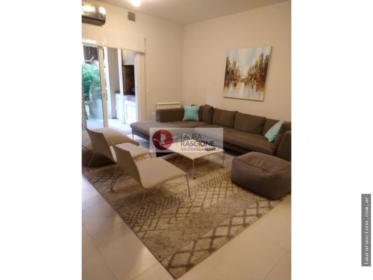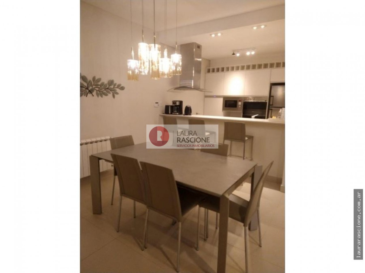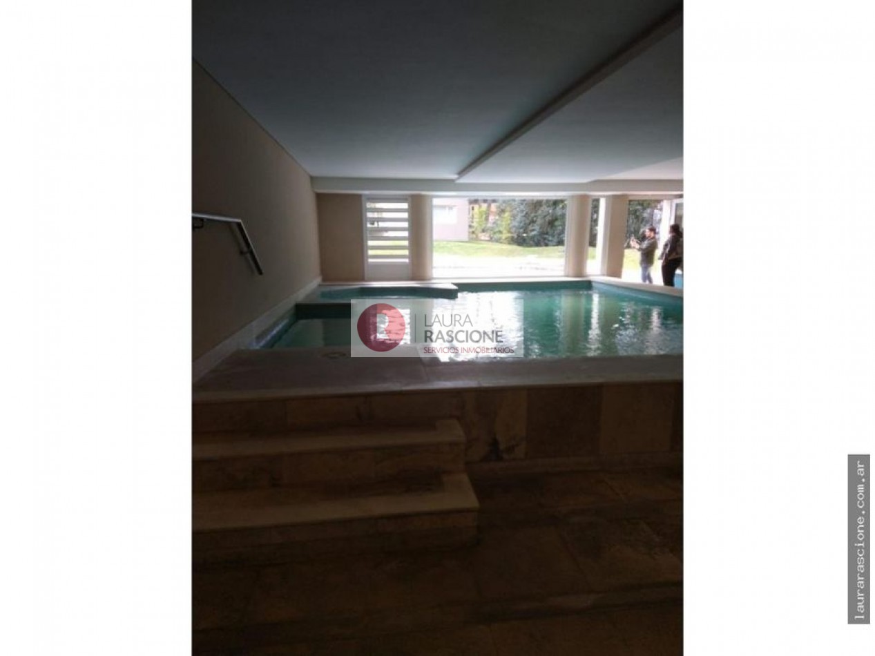Espectacular Departamento de categoría en venta. El mismo cuenta con un amplio y luminoso living comedor con salida al balcón corrido con parrilla. Cocina integrada al comedor. Habitación principal en suite con vestidor. Las dos habitaciones con salida al balcón. Segundo baño completo. Cochera Cubierta. Baulera. Jardín privado - Superficie: 100 m2 Cubiertos 20 m2 Balcón 150 m2 Jardín privado Amenities: Piscina climatizada cubierta. Piscina exterior. Gimnasio, sauna, sala de masajes, mini sala de cine, terraza con parrillas equipada con mesas grandes, hidromasaje para varias personas, solárium con Jacuzzi, baños comunes, jardín de invierno. (Equipado con accesorios de primer nivel). Vigilancia 24 hs. Detalles constructivos: Carpintería exterior de PVC con cámara de aire. Carpintería interior de madera a medida. Calefacción por radiadores. Aires acondicionados frio-calor. Interior de placares totalmente terminados. Mobiliario de cocina a medida. Mesadas de cocina silestone, mesada de baño de mármol. Información adicional: Gas natural, agua caliente con caldera individual. *Toda la información y medidas provistas por el Agente Inmobiliario son aproximadas y podrán ratificarse con la documentación pertinente.