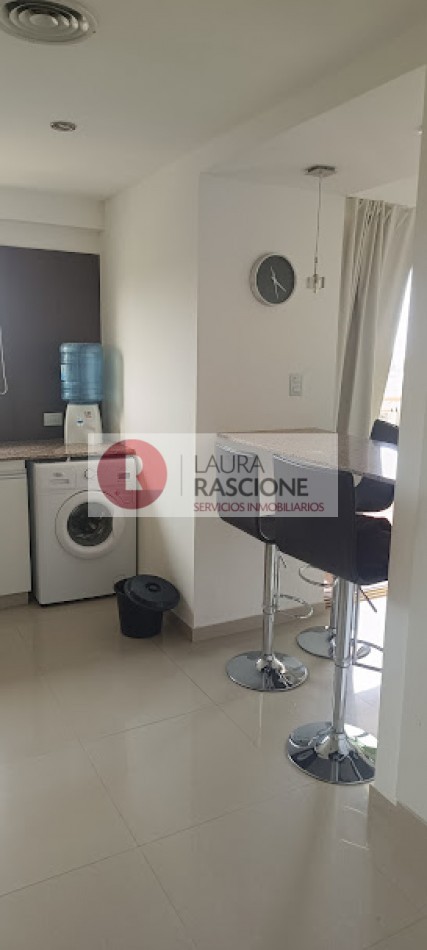 EN SU INGRESO SE ENCUENTRA EL LIVING COMEDOR CON UNA COCINA SEMI.INTEGRADA CON BARRA DE GRANITO.