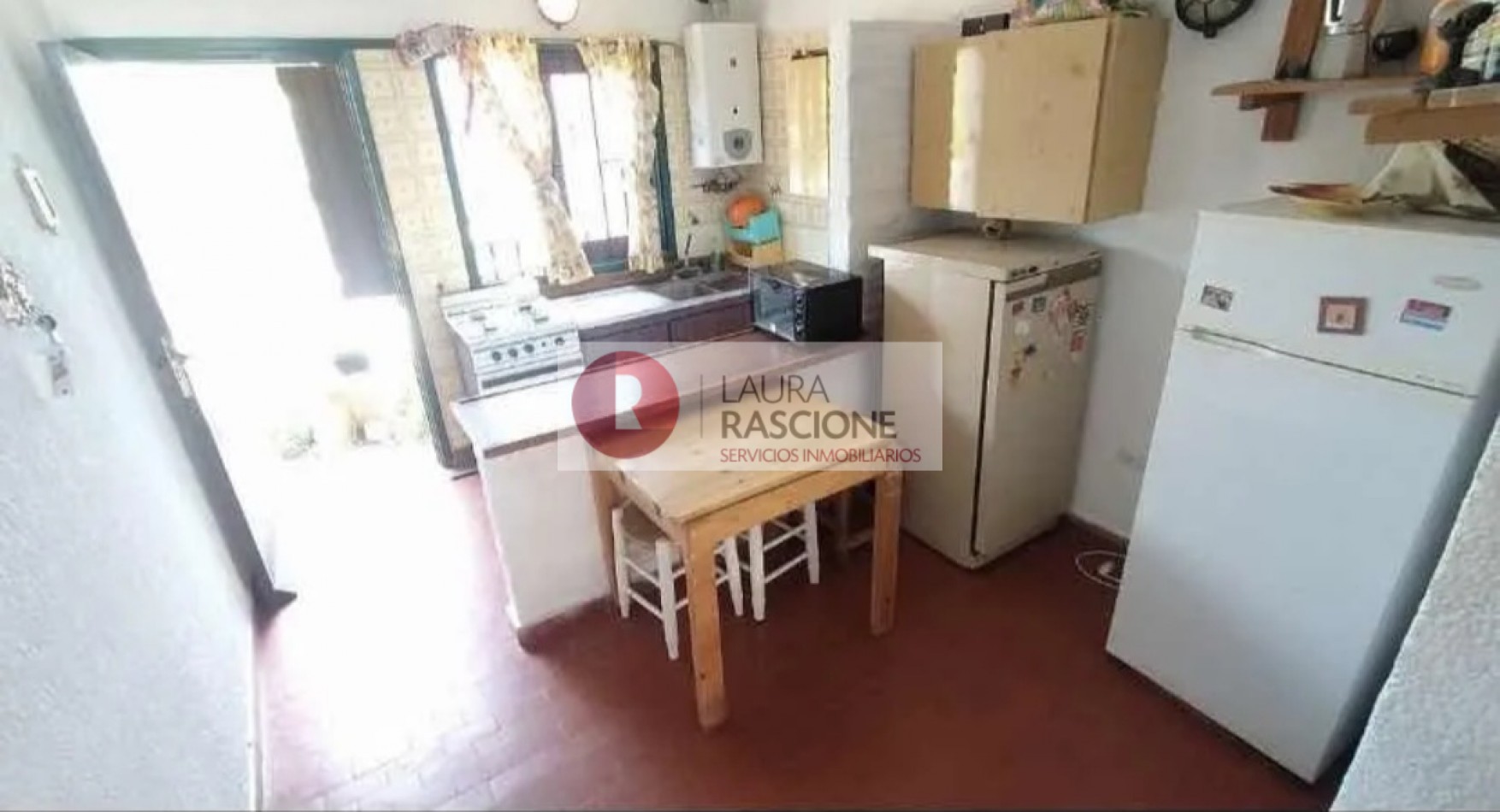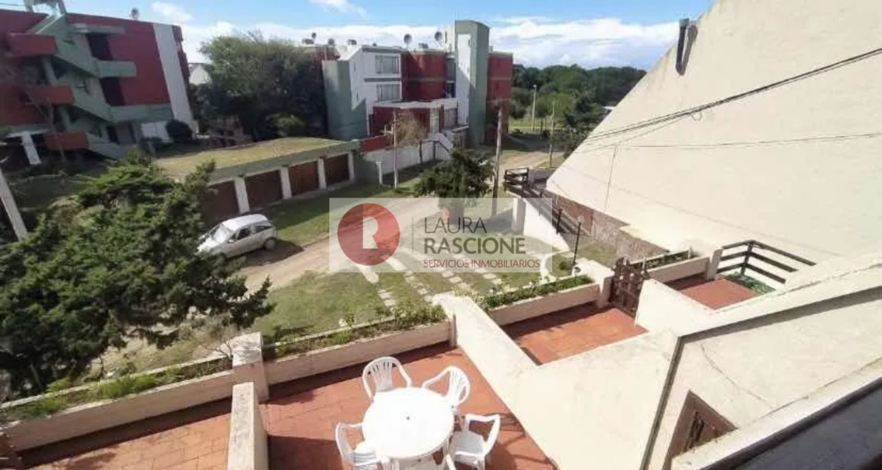 PRIMER PISO: hermoso balcón terraza con mesas y sillas,acceso a living comedor con amplios ventanales y postigones, mesa para 8 personas, vajillero, sillón de 2 plazas, mesa ratona y sillones individuales,1 dormitorio con 4 camas individuales con ventana al contra frente,toilette de recepción, cocina con comedor diario con ventana y puerta wue conduce al patio posterior.